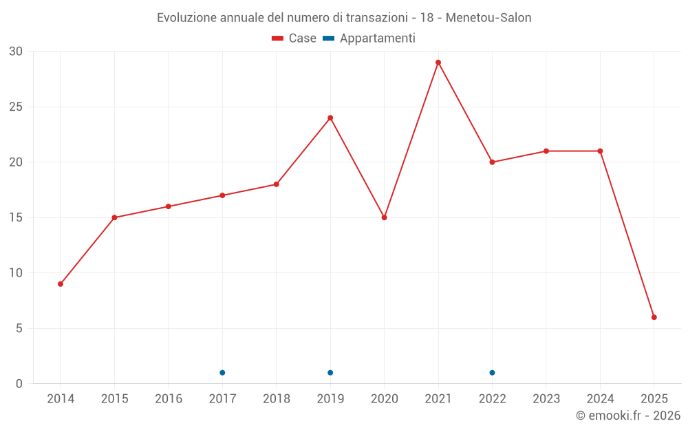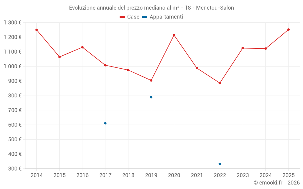 Il prezzo mediano sulle 22 transazioni di case degli ultimi 12 mesi nel comune di Menetou-Salon era di 1 181 € al metro quadrato per un valore patrimoniale mediano di 109 550 €. In questo periodo il 60% delle transazioni era tra 716 e 1 515 € al metro quadrato (dal 2° all'8° decile).