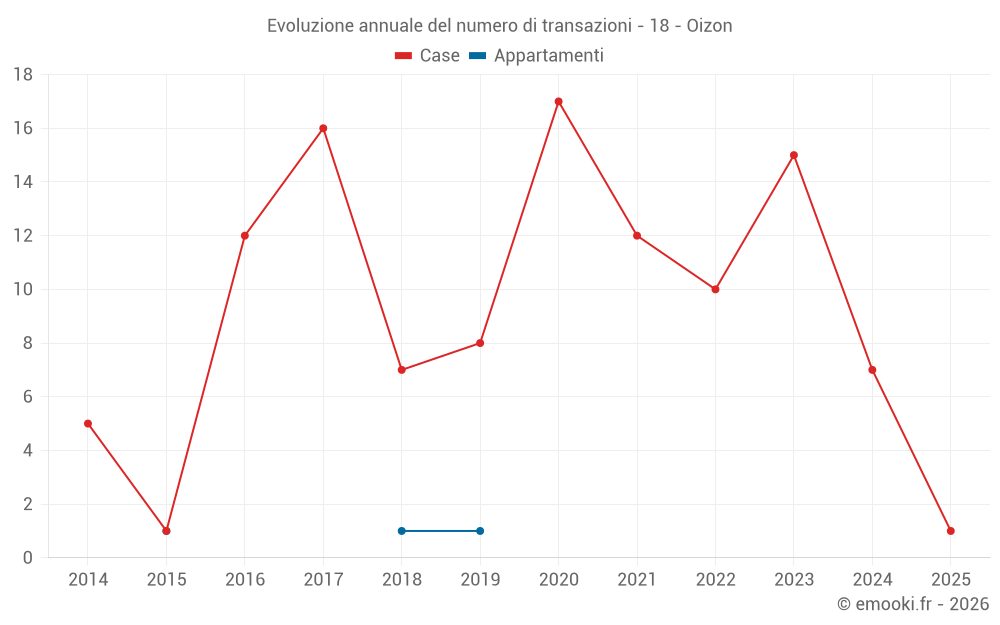 Il prezzo mediano sulle 20 transazioni di case degli ultimi 24 mesi nel comune di Oizon era di 1 222 € al metro quadrato per un valore patrimoniale mediano di 90 797 €. In questo periodo il 60% delle transazioni era tra 789 e 1 577 € al metro quadrato (dal 2° all'8° decile).