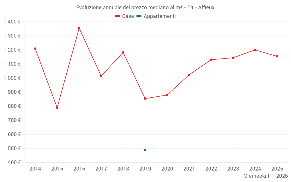 Evoluzione del prezzo mediano al m² degli appartamenti