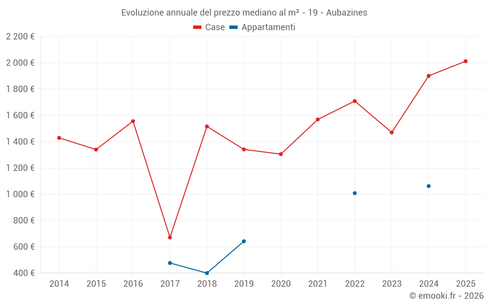 Evoluzione del prezzo mediano al m² degli appartamenti