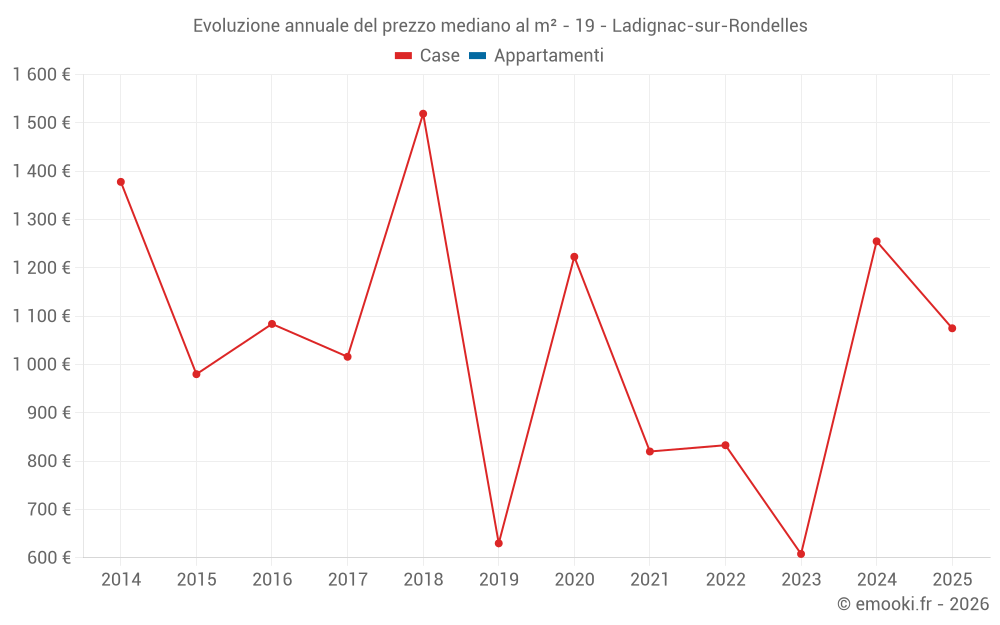 Evoluzione del prezzo mediano al m² degli appartamenti