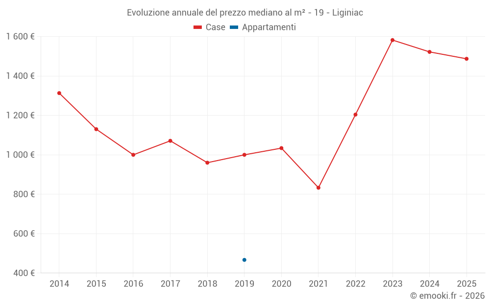 Il prezzo mediano sulle 21 transazioni di case degli ultimi 24 mesi nel comune di Liginiac era di 1 598 € al metro quadrato per un valore patrimoniale mediano di 132 835 €. In questo periodo il 60% delle transazioni era tra 863 e 2 111 € al metro quadrato (dal 2° all'8° decile).