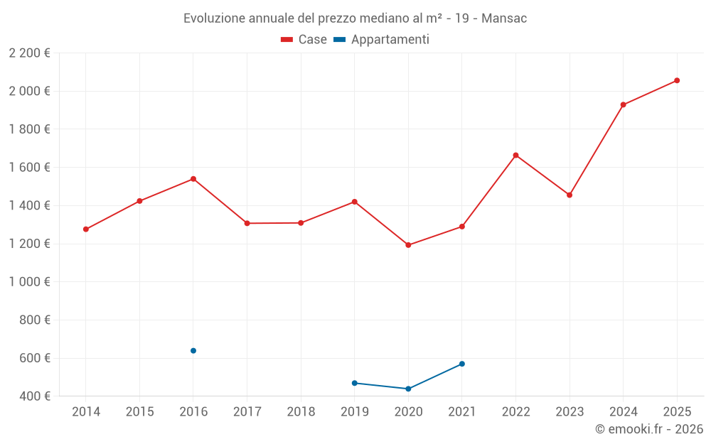 Il prezzo mediano sulle 25 transazioni di case degli ultimi 24 mesi nel comune di Mansac era di 1 817 € al metro quadrato per un valore patrimoniale mediano di 135 000 €. In questo periodo il 60% delle transazioni era tra 1 237 e 2 171 € al metro quadrato (dal 2° all'8° decile).