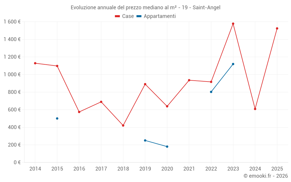 Evoluzione del prezzo mediano al m² degli appartamenti