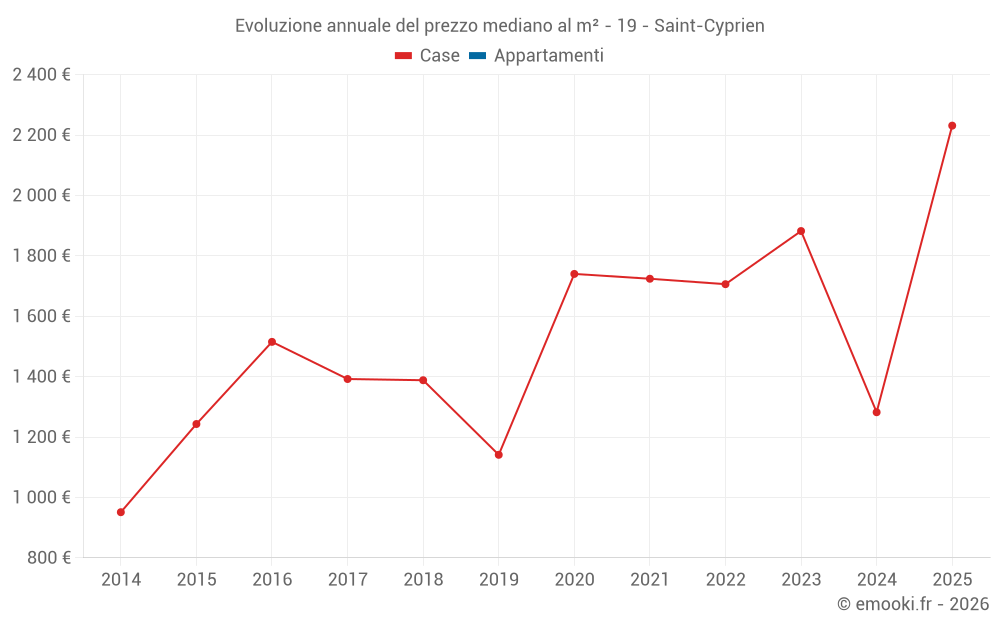 Evoluzione del prezzo mediano al m² degli appartamenti