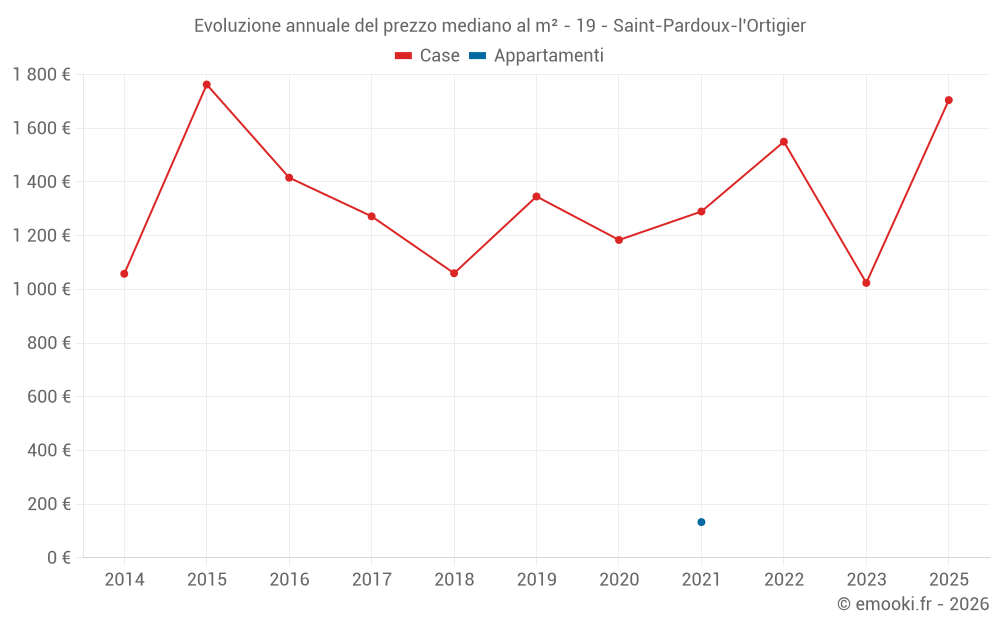 Evoluzione annuale del prezzo mediano al m²