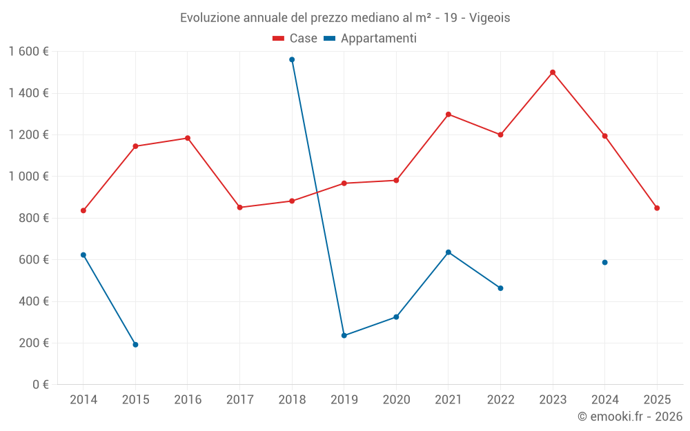 Qual è il prezzo al m2 delle case in Vigeois?