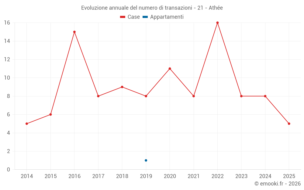 Il prezzo mediano sulle 19 transazioni di case degli ultimi 24 mesi nel comune di Athée era di 1 673 € al metro quadrato per un valore patrimoniale mediano di 157 000 €. In questo periodo il 60% delle transazioni era tra 1 448 e 2 120 € al metro quadrato (dal 2° all'8° decile).