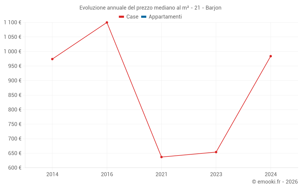 Evoluzione del prezzo mediano al m² degli appartamenti