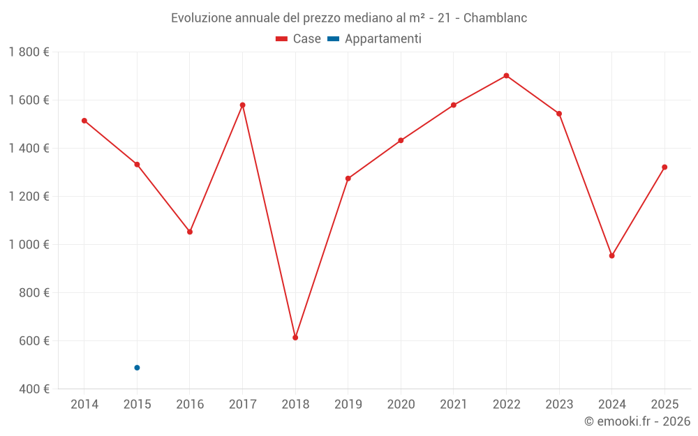 Evoluzione del prezzo mediano al m² degli appartamenti
