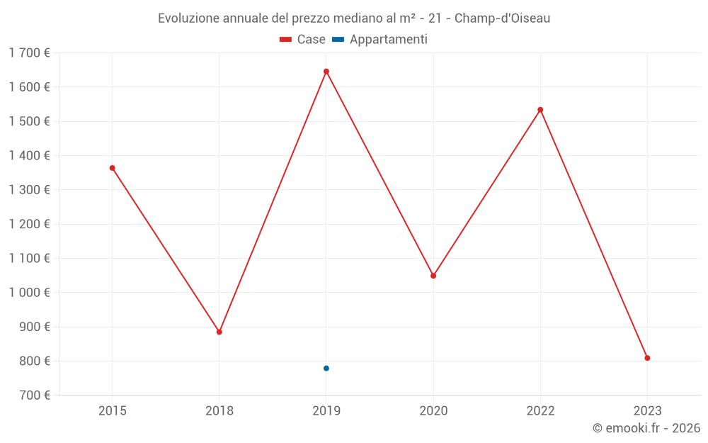 Evoluzione del prezzo mediano al m² degli appartamenti