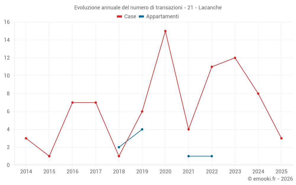 Il prezzo mediano sulle 19 transazioni di case degli ultimi 24 mesi nel comune di Lacanche era di 909 € al metro quadrato per un valore patrimoniale mediano di 89 000 €. In questo periodo il 60% delle transazioni era tra 586 e 1 360 € al metro quadrato (dal 2° all'8° decile).