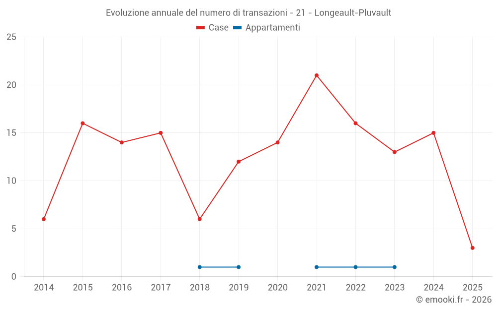 Il prezzo mediano sulle 29 transazioni di case degli ultimi 24 mesi nel comune di Longeault-Pluvault era di 2 200 € al metro quadrato per un valore patrimoniale mediano di 220 000 €. In questo periodo il 60% delle transazioni era tra 1 834 e 2 598 € al metro quadrato (dal 2° all'8° decile).