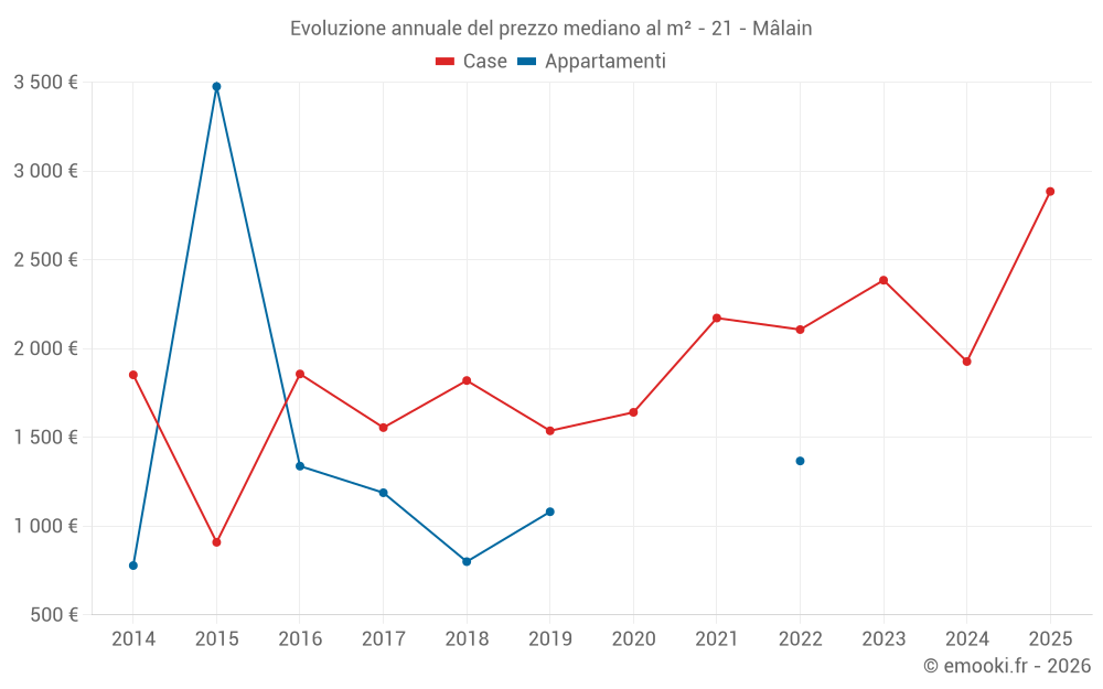 Evoluzione del prezzo mediano al m² degli appartamenti
