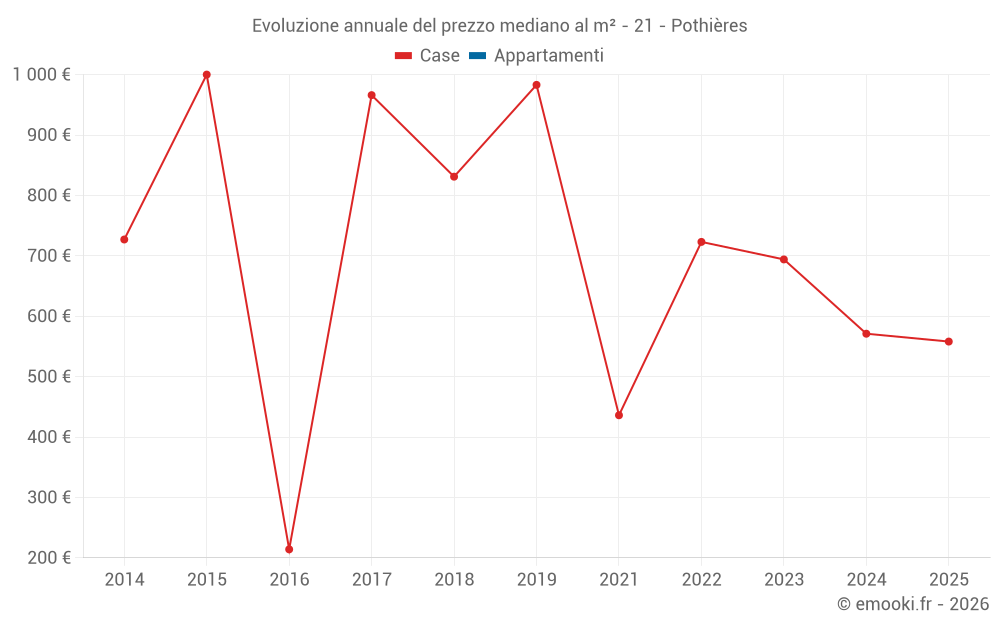 Evoluzione del prezzo mediano al m² degli appartamenti