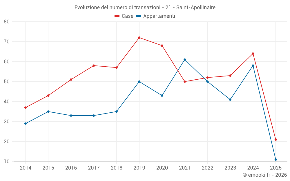 Attenzione, ultimo anno incompleto. Le proiezioni sono effettuate in base alle proporzioni tra semestri dell'anno precedente a livello dipartimentale/nazionale e per tipo di proprietà.