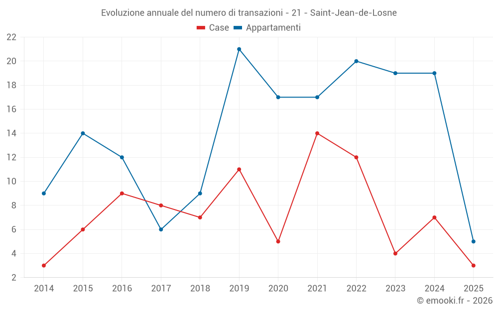 Il prezzo mediano sulle 32 transazioni di appartamenti degli ultimi 24 mesi nel comune di Saint-Jean-de-Losne era di 842 € al metro quadrato per un valore patrimoniale mediano di 59 250 €. In questo periodo il 60% delle transazioni era tra 625 e 1 179 € al metro quadrato (dal 2° all'8° decile).