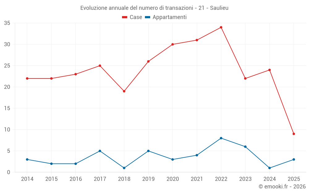 Il prezzo mediano sulle 21 transazioni di case degli ultimi 12 mesi nel comune di Saulieu era di 1 176 € al metro quadrato per un valore patrimoniale mediano di 100 000 €. In questo periodo il 60% delle transazioni era tra 733 e 1 585 € al metro quadrato (dal 2° all'8° decile).