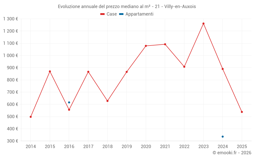 Evoluzione del prezzo mediano al m² degli appartamenti