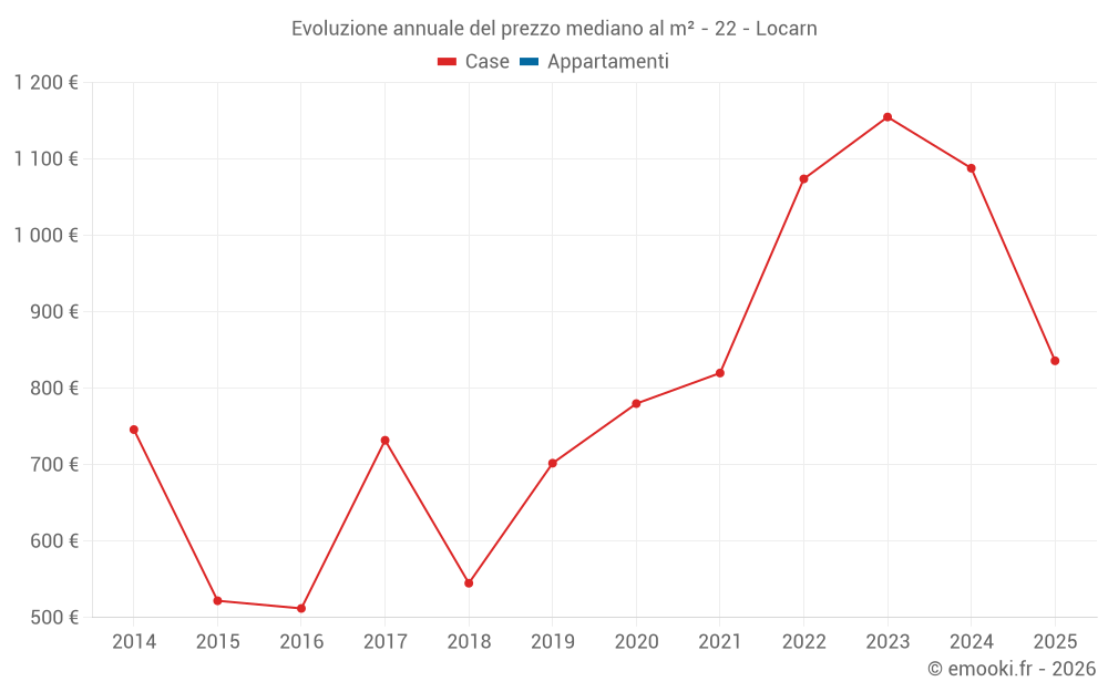 Il prezzo mediano sulle 19 transazioni di case degli ultimi 12 mesi nel comune di Locarn era di 927 € al metro quadrato per un valore patrimoniale mediano di 80 000 €. In questo periodo il 60% delle transazioni era tra 605 e 1 218 € al metro quadrato (dal 2° all'8° decile).