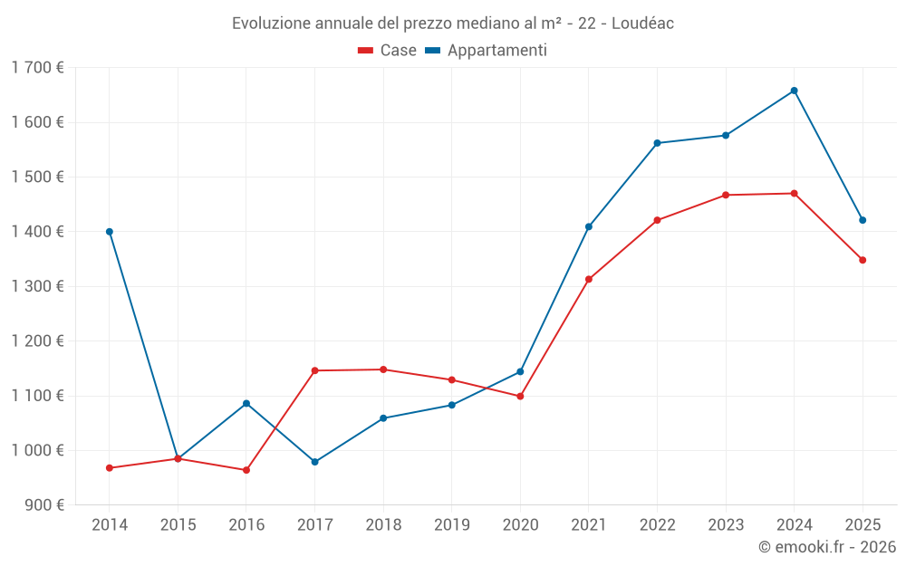 Il prezzo mediano sulle 38 transazioni di case degli ultimi 6 mesi nel comune di Loudéac era di 1 348 € al metro quadrato per un valore patrimoniale mediano di 156 500 €. In questo periodo il 60% delle transazioni era tra 961 e 1 674 € al metro quadrato (dal 2° all'8° decile).