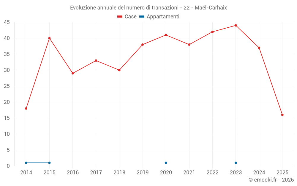 Il prezzo mediano sulle 33 transazioni di case degli ultimi 12 mesi nel comune di Maël-Carhaix era di 1 020 € al metro quadrato per un valore patrimoniale mediano di 85 000 €. In questo periodo il 60% delle transazioni era tra 606 e 1 383 € al metro quadrato (dal 2° all'8° decile).