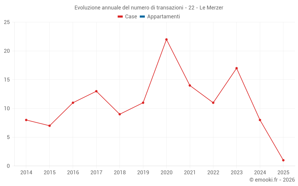 Il prezzo mediano sulle 17 transazioni di case degli ultimi 24 mesi nel comune di Le Merzer era di 1 648 € al metro quadrato per un valore patrimoniale mediano di 170 000 €. In questo periodo il 60% delle transazioni era tra 1 172 e 2 464 € al metro quadrato (dal 2° all'8° decile).