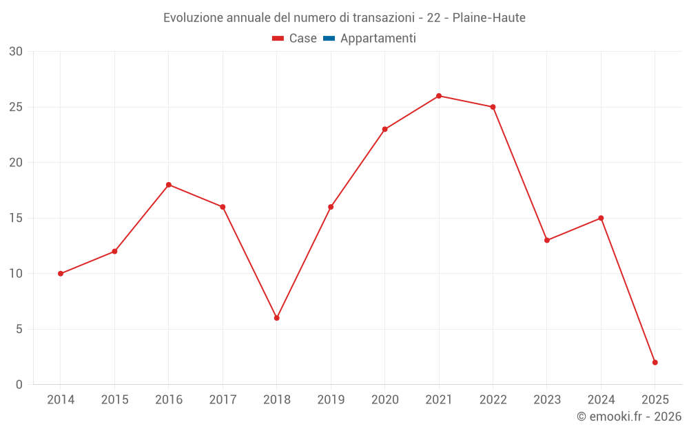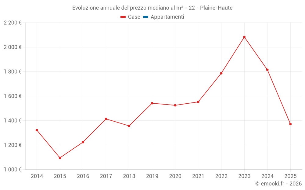 Il prezzo mediano sulle 25 transazioni di case degli ultimi 24 mesi nel comune di Plaine-Haute era di 1 899 € al metro quadrato per un valore patrimoniale mediano di 144 750 €. In questo periodo il 60% delle transazioni era tra 1 402 e 2 272 € al metro quadrato (dal 2° all'8° decile).