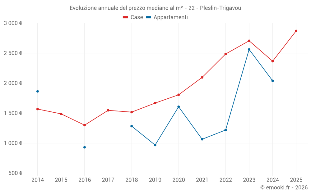 Qual è il prezzo al m2 delle case in Pleslin-Trigavou?
