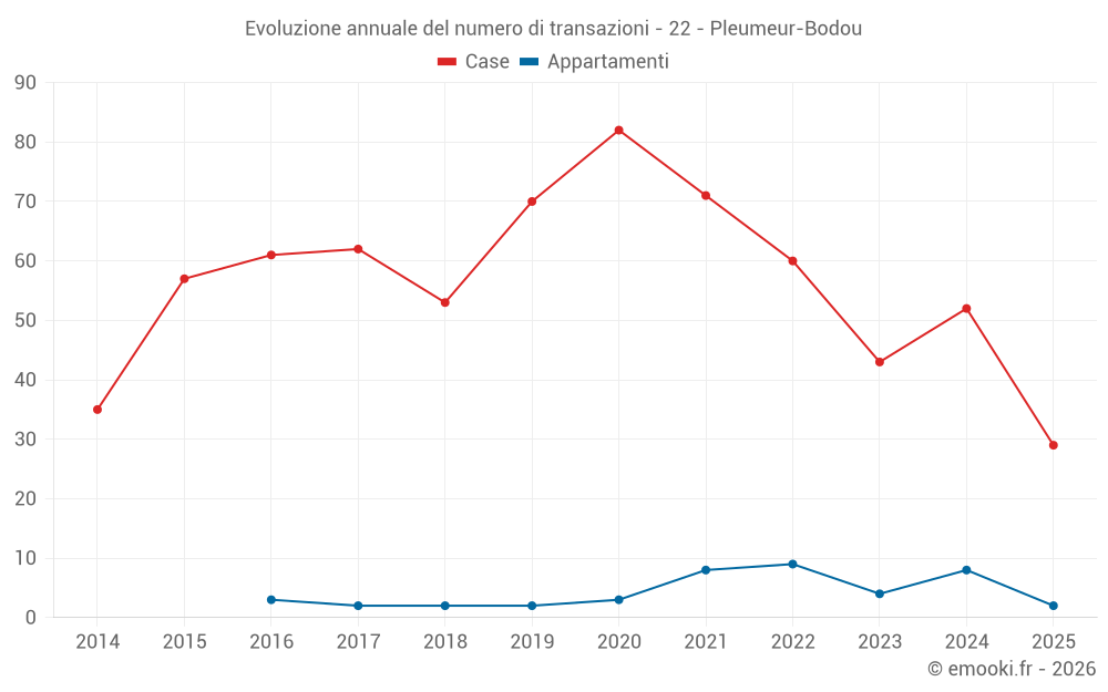 Il prezzo mediano sulle 29 transazioni di case degli ultimi 6 mesi nel comune di Pleumeur-Bodou era di 2 778 € al metro quadrato per un valore patrimoniale mediano di 250 000 €. In questo periodo il 60% delle transazioni era tra 1 566 e 4 199 € al metro quadrato (dal 2° all'8° decile).