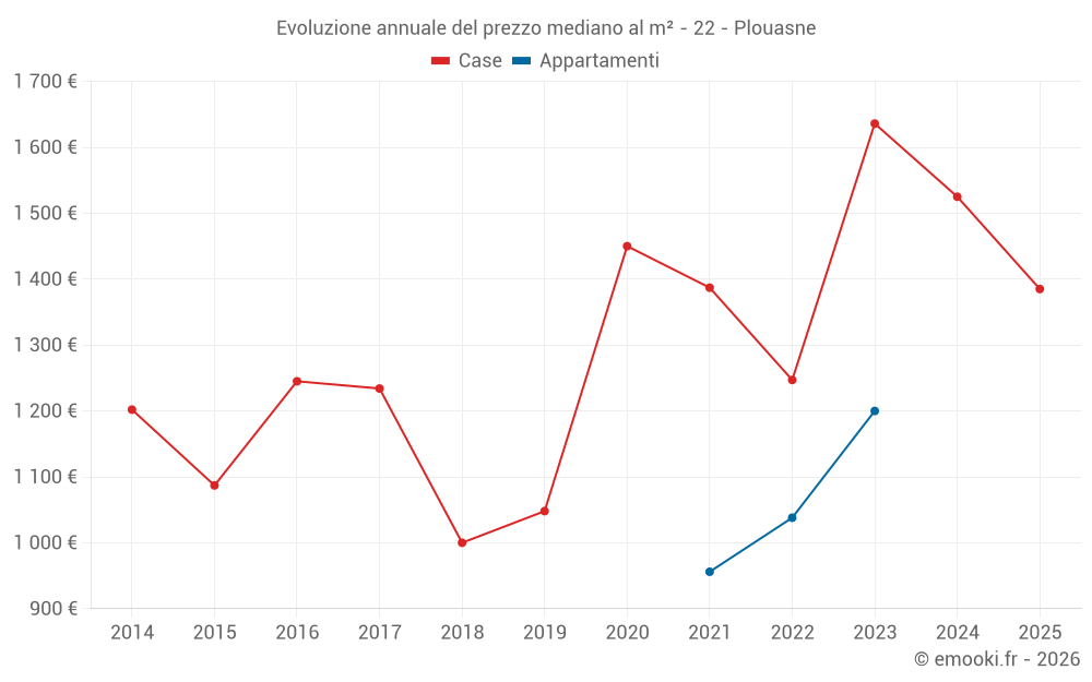 Il prezzo mediano sulle 20 transazioni di case degli ultimi 12 mesi nel comune di Plouasne era di 1 270 € al metro quadrato per un valore patrimoniale mediano di 104 250 €. In questo periodo il 60% delle transazioni era tra 803 e 1 541 € al metro quadrato (dal 2° all'8° decile).
