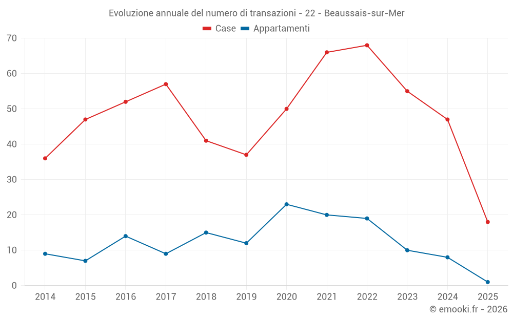 Il prezzo mediano sulle 18 transazioni di case degli ultimi 6 mesi nel comune di Beaussais-sur-Mer era di 2 516 € al metro quadrato per un valore patrimoniale mediano di 329 200 €. In questo periodo il 60% delle transazioni era tra 2 117 e 3 684 € al metro quadrato (dal 2° all'8° decile).
