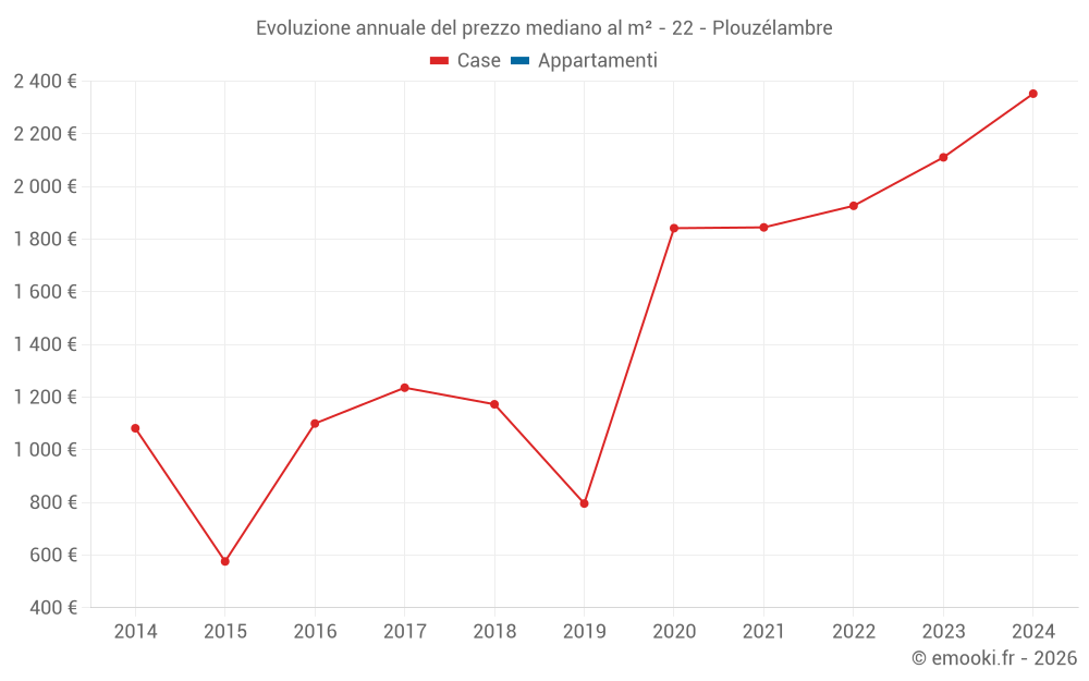 Evoluzione del prezzo mediano al m² degli appartamenti