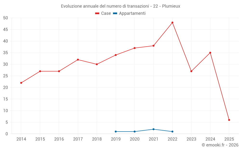 Il prezzo mediano sulle 29 transazioni di case degli ultimi 12 mesi nel comune di Plumieux era di 1 171 € al metro quadrato per un valore patrimoniale mediano di 77 500 €. In questo periodo il 60% delle transazioni era tra 670 e 1 552 € al metro quadrato (dal 2° all'8° decile).