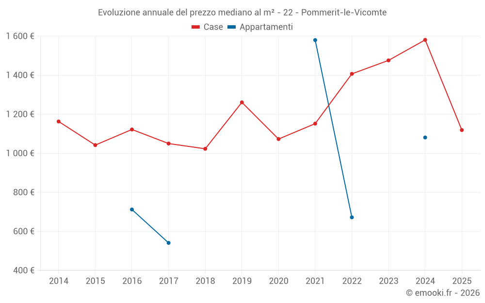 Il prezzo mediano sulle 18 transazioni di case degli ultimi 12 mesi nel comune di Pommerit-le-Vicomte era di 1 394 € al metro quadrato per un valore patrimoniale mediano di 121 500 €. In questo periodo il 60% delle transazioni era tra 940 e 2 016 € al metro quadrato (dal 2° all'8° decile).