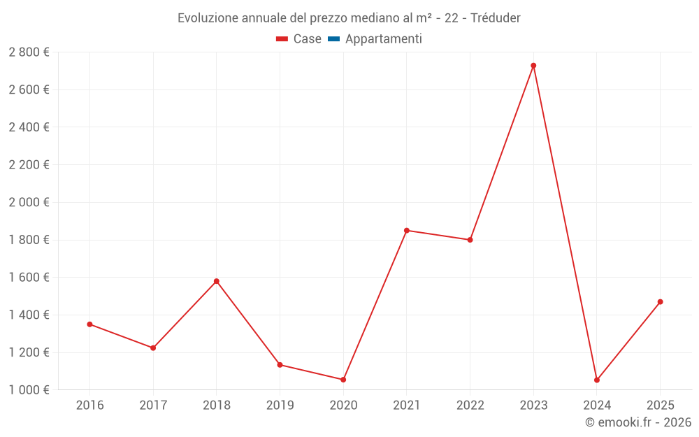 Evoluzione del prezzo mediano al m² degli appartamenti