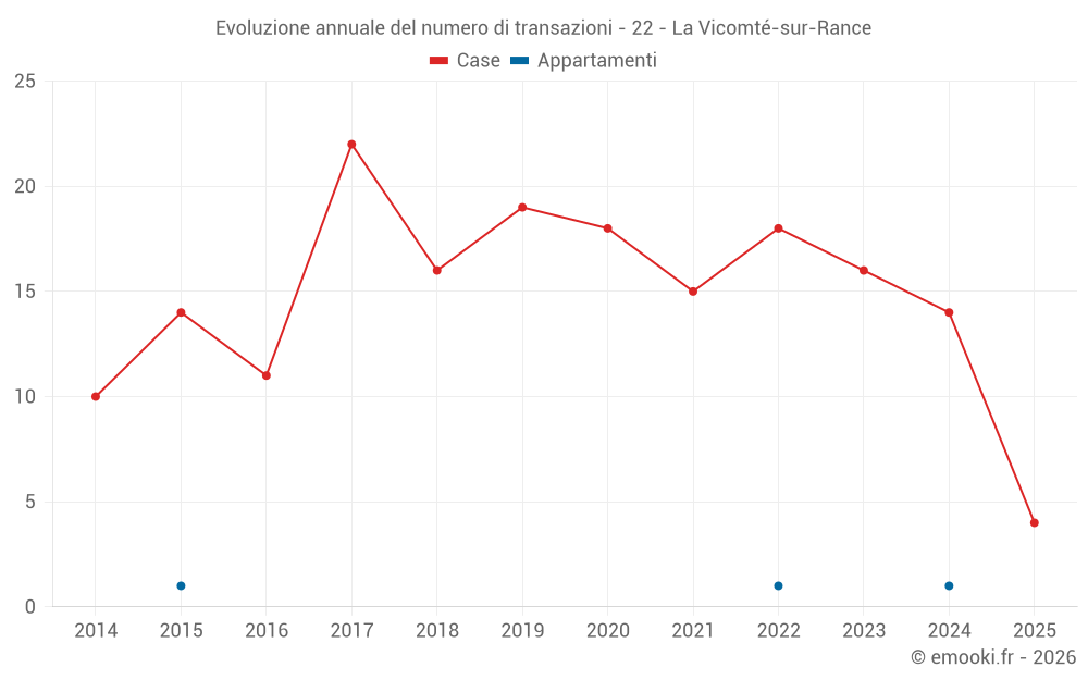 Il prezzo mediano sulle 28 transazioni di case degli ultimi 24 mesi nel comune di La Vicomté-sur-Rance era di 2 506 € al metro quadrato per un valore patrimoniale mediano di 289 850 €. In questo periodo il 60% delle transazioni era tra 2 105 e 3 204 € al metro quadrato (dal 2° all'8° decile).
