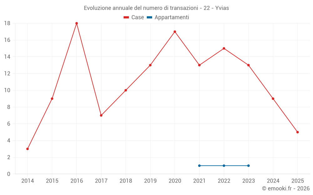 Il prezzo mediano sulle 19 transazioni di case degli ultimi 24 mesi nel comune di Yvias era di 1 413 € al metro quadrato per un valore patrimoniale mediano di 150 000 €. In questo periodo il 60% delle transazioni era tra 1 235 e 2 252 € al metro quadrato (dal 2° all'8° decile).