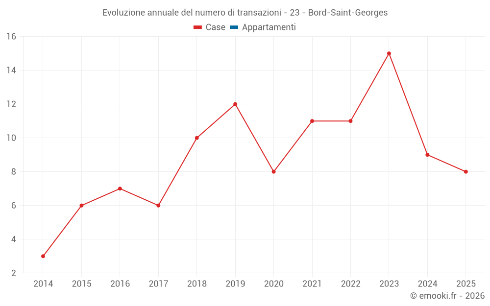 Il prezzo mediano sulle 21 transazioni di case degli ultimi 24 mesi nel comune di Bord-Saint-Georges era di 857 € al metro quadrato per un valore patrimoniale mediano di 60 000 €. In questo periodo il 60% delle transazioni era tra 357 e 1 325 € al metro quadrato (dal 2° all'8° decile).