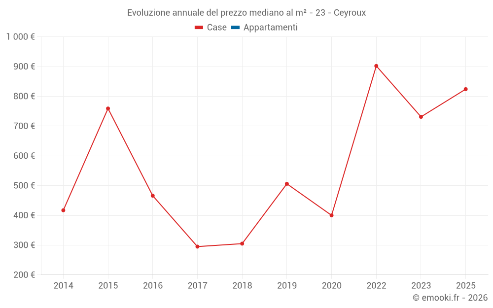 Evoluzione del prezzo mediano al m² degli appartamenti