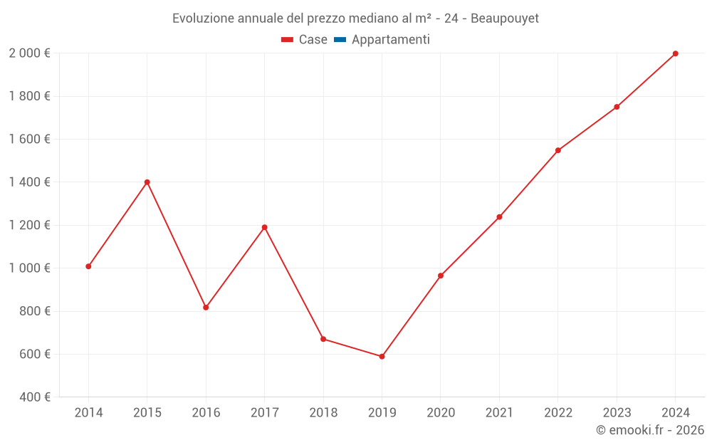 Evoluzione del prezzo mediano al m² degli appartamenti