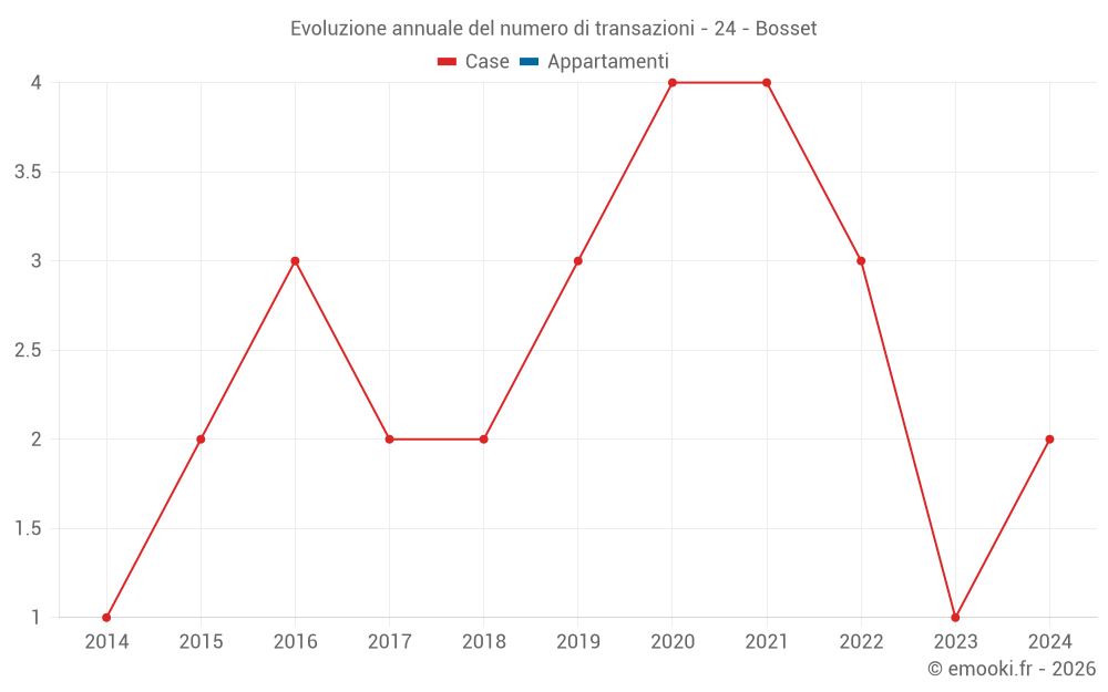 Mappa dei prezzi della casa nel comune di Bosset, scegli una sezione per vedere le transazioni per parcella.