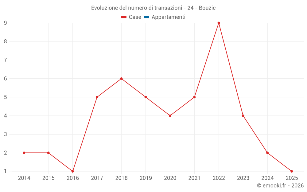 Mappa dei prezzi della casa nel comune di Bouzic, scegli una sezione per vedere le transazioni per parcella.