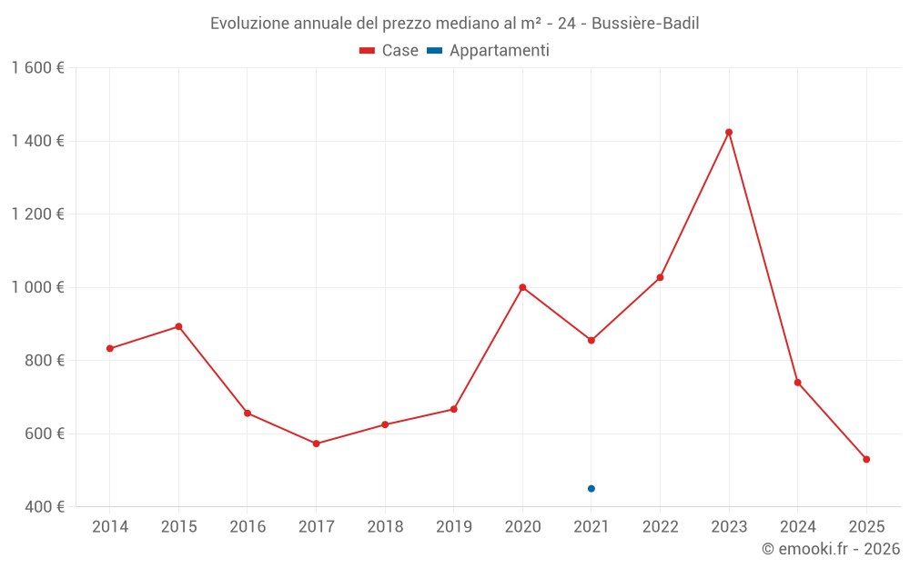 Il prezzo mediano sulle 21 transazioni di case degli ultimi 24 mesi nel comune di Bussière-Badil era di 951 € al metro quadrato per un valore patrimoniale mediano di 106 500 €. In questo periodo il 60% delle transazioni era tra 567 e 2 320 € al metro quadrato (dal 2° all'8° decile).