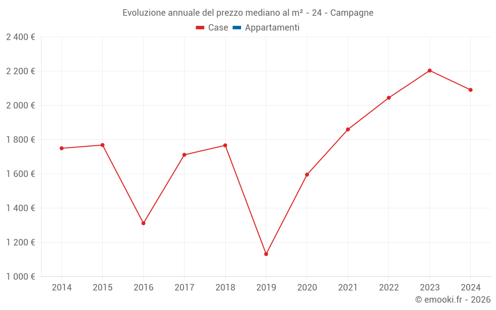 Evoluzione del prezzo mediano al m² degli appartamenti