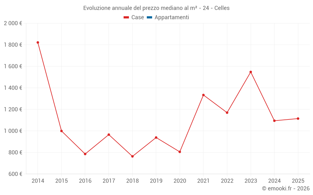 Prezzo al m² in Celles