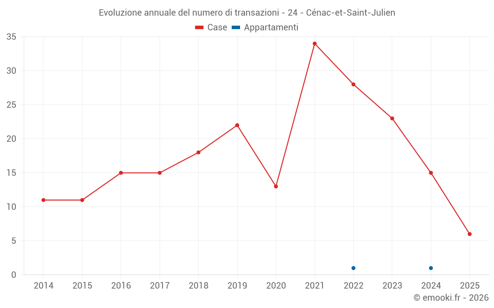 Il prezzo mediano sulle 31 transazioni di case degli ultimi 24 mesi nel comune di Cénac-et-Saint-Julien era di 1 971 € al metro quadrato per un valore patrimoniale mediano di 239 000 €. In questo periodo il 60% delle transazioni era tra 1 633 e 2 436 € al metro quadrato (dal 2° all'8° decile).