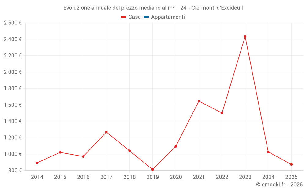 Evoluzione del prezzo mediano al m² degli appartamenti