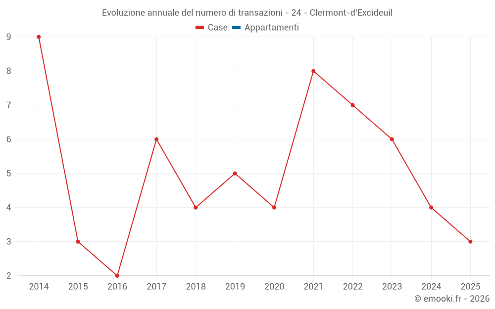 Attenzione, ultimo anno incompleto. Le proiezioni sono effettuate in base alle proporzioni tra semestri dell'anno precedente a livello dipartimentale/nazionale e per tipo di proprietà.