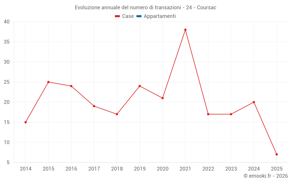Il prezzo mediano sulle 17 transazioni di case degli ultimi 12 mesi nel comune di Coursac era di 2 104 € al metro quadrato per un valore patrimoniale mediano di 249 000 €. In questo periodo il 60% delle transazioni era tra 1 287 e 2 417 € al metro quadrato (dal 2° all'8° decile).